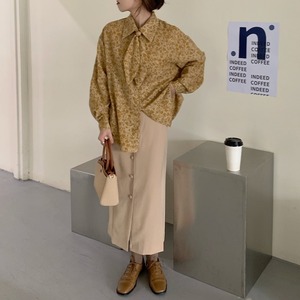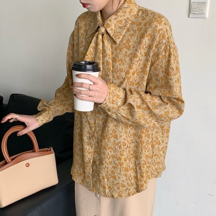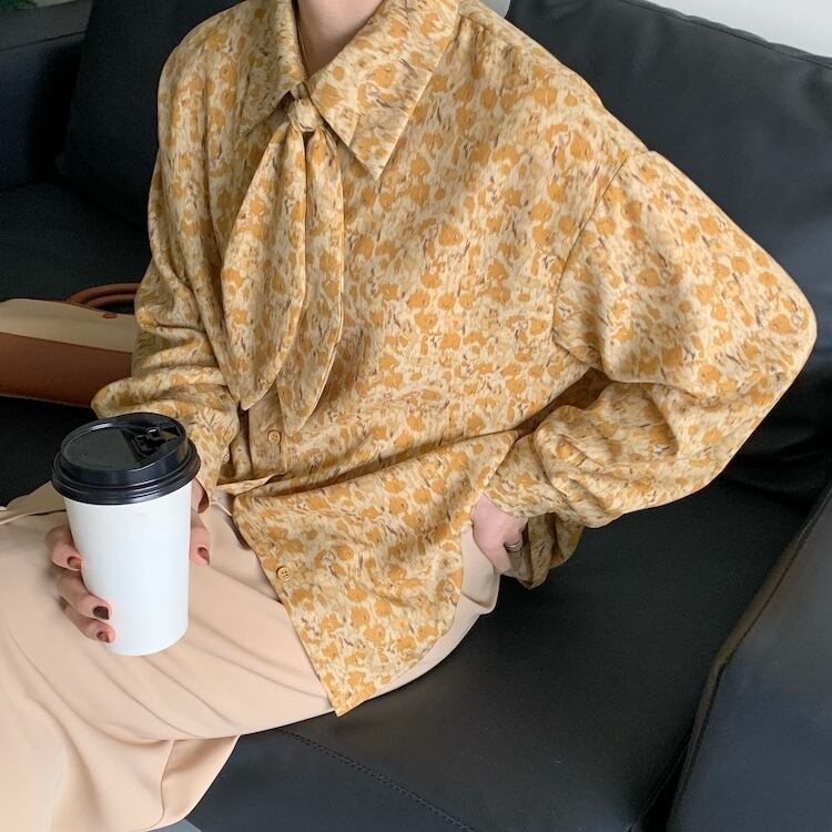 リボンフローラルシャツ 長袖スリーブスプリングトップス ロング 春物 花柄 ビッグFスモールZ韓国27861825251
