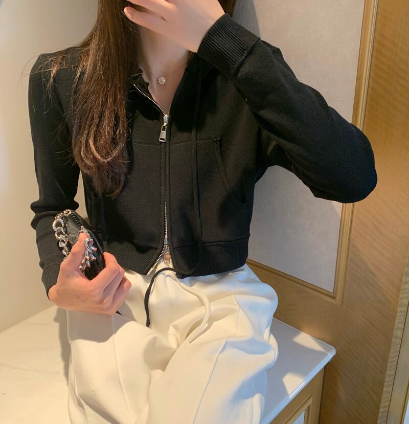 カジュアルフードセーター ルーズポケットジッパーカーディガンコート ジャケット レディース ビッグFスモールZ韓国55526098518