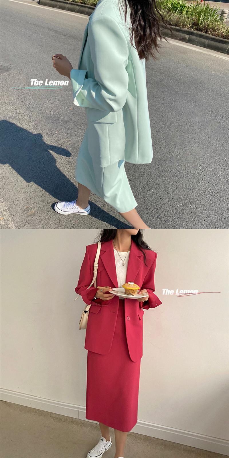 ジャケット カラースリットスカート スプリングセット 春物 ピュア ビッグFスモールZ韓国80185224377