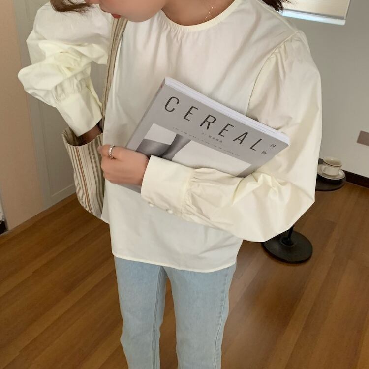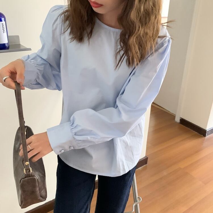 ラウンドネックソリッド カラーシャツ 長袖スリーブスプリングトップス レディース ロング 春物 Oネック ソリッドカラー ビッグFスモールZ韓国51004808212