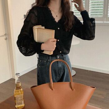 スプリングレースVネックシャツ スタンダードブラウス レディース ロング レトロ 春物 ビッグFスモールZ韓国99955143935