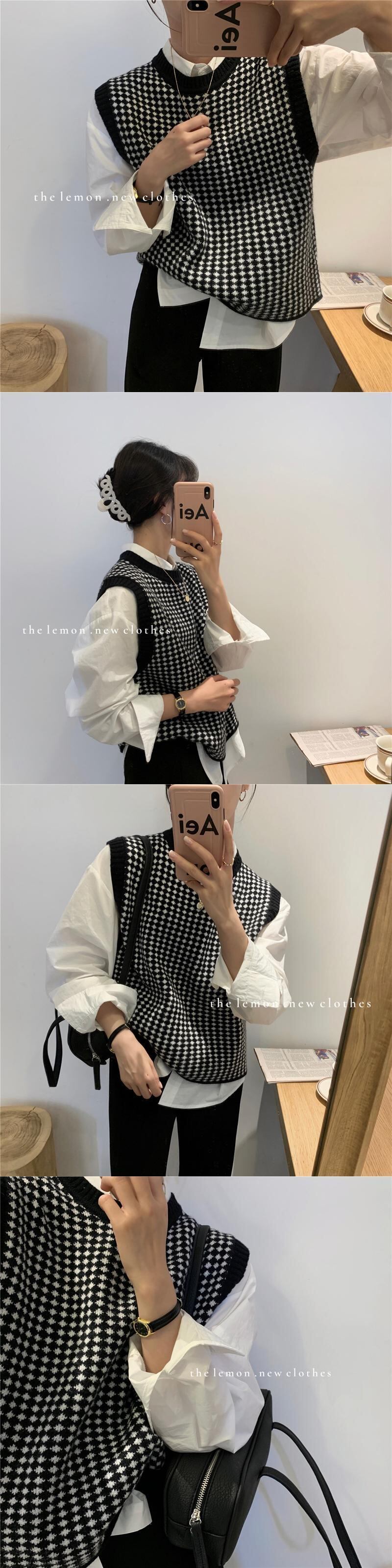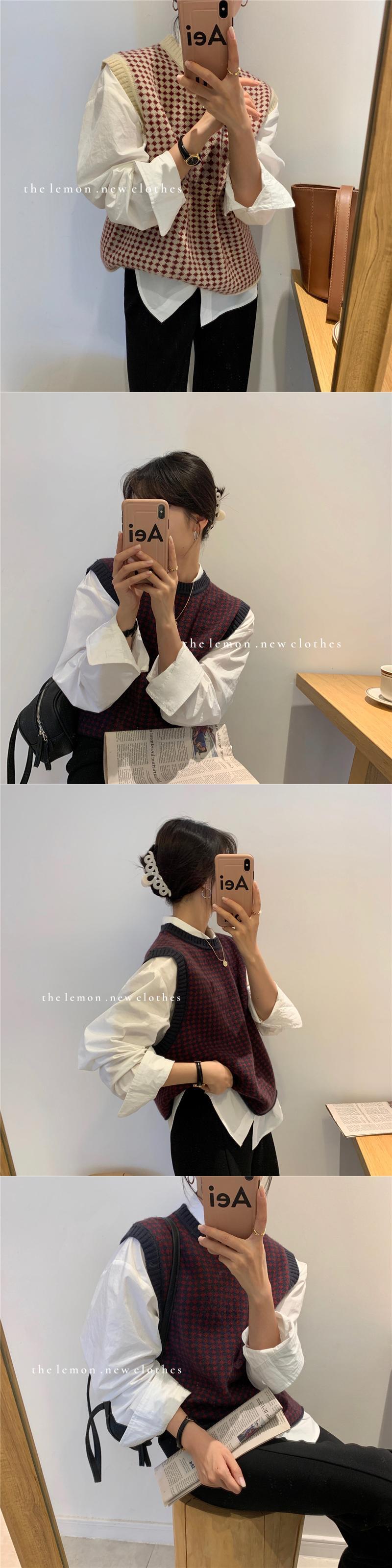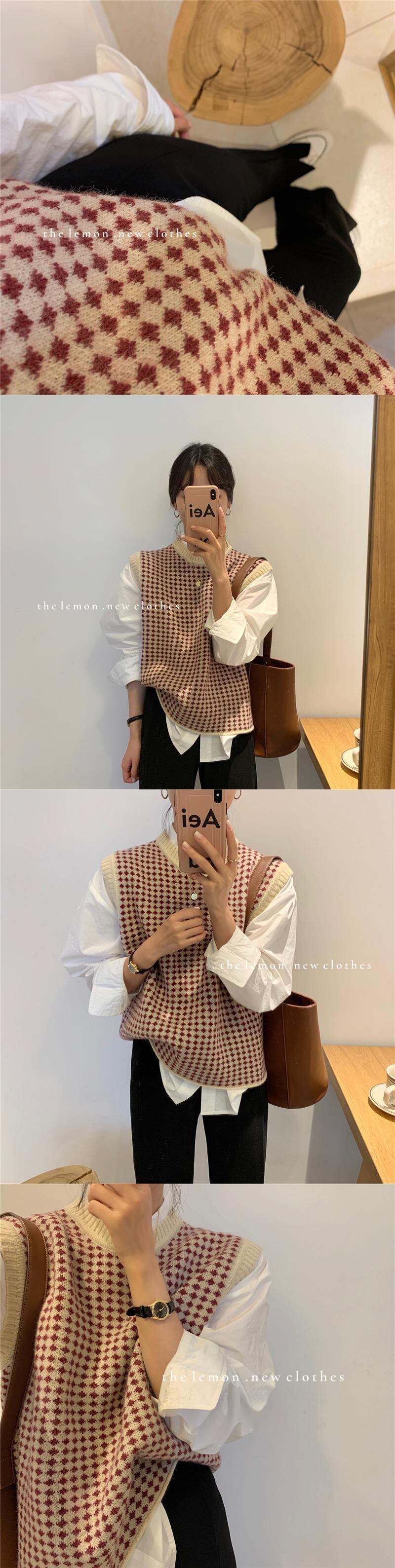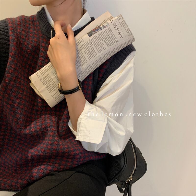 パターンラウンドネックノースリーブニットスプリングトップス レッド 春物 Oネック ビッグFスモールZ韓国37285398744