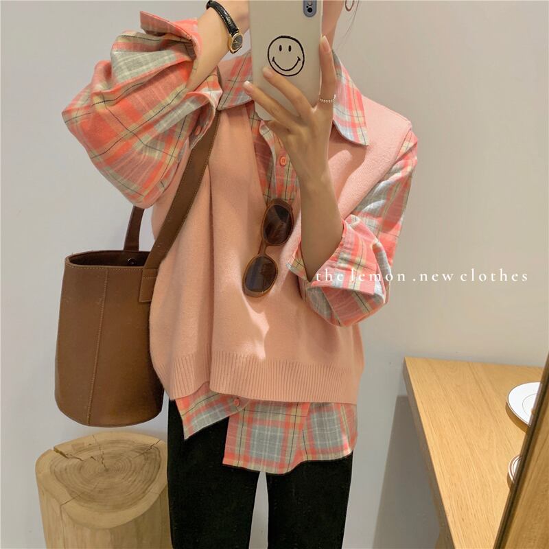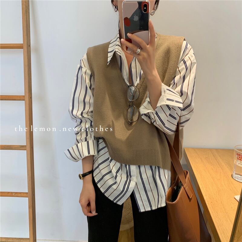 ワンピースニットルーズVネックスプリング 春物 ビッグFスモールZ韓国22563727575