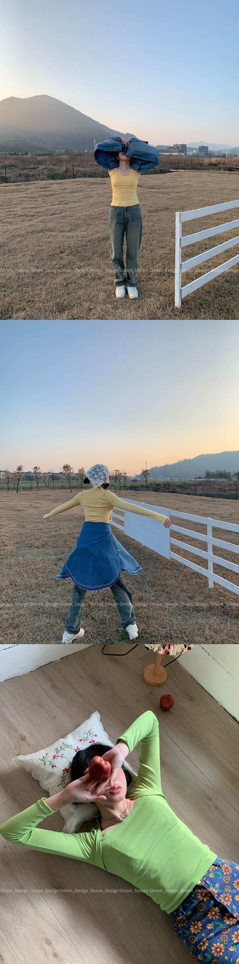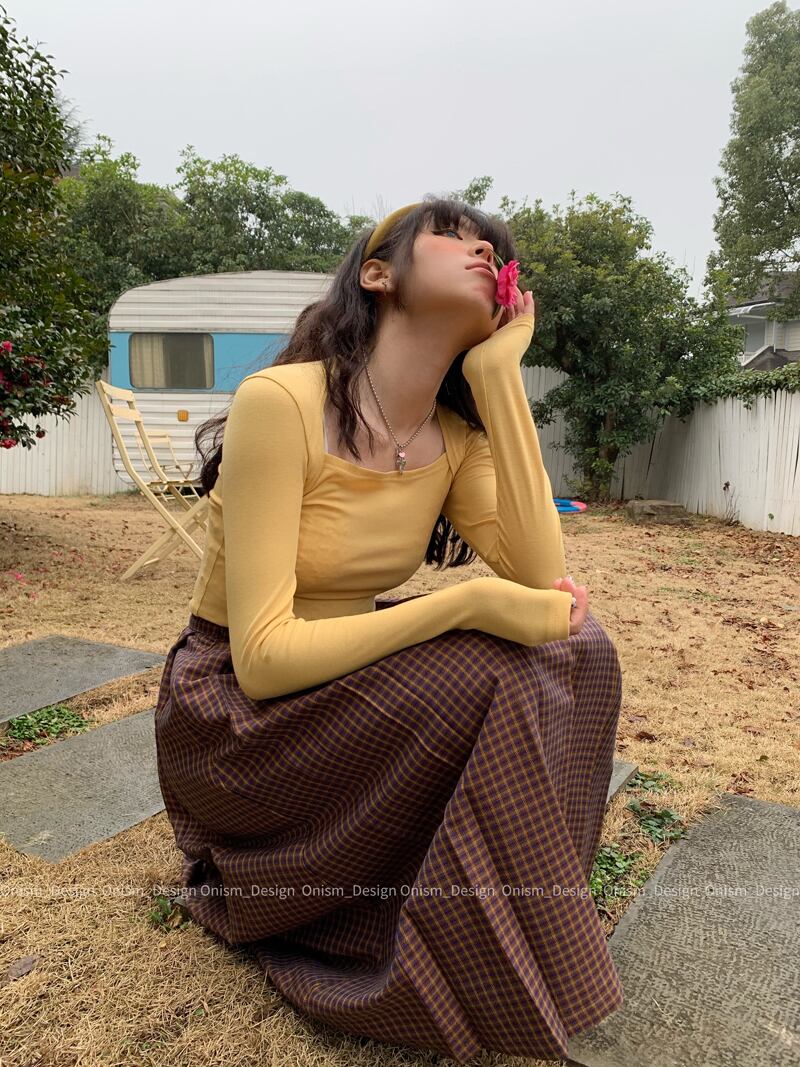 ソリッド カラースリムTシャツ トップス レディース ロング ソリッドカラー スクウェア ビッグFスモールZ韓国68882178557