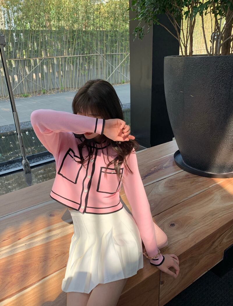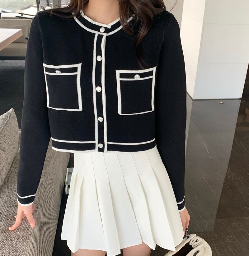 カラーカーディガンボタンラウンドネックニットジャケット レディース Oネック ビッグFスモールZ韓国4492992477