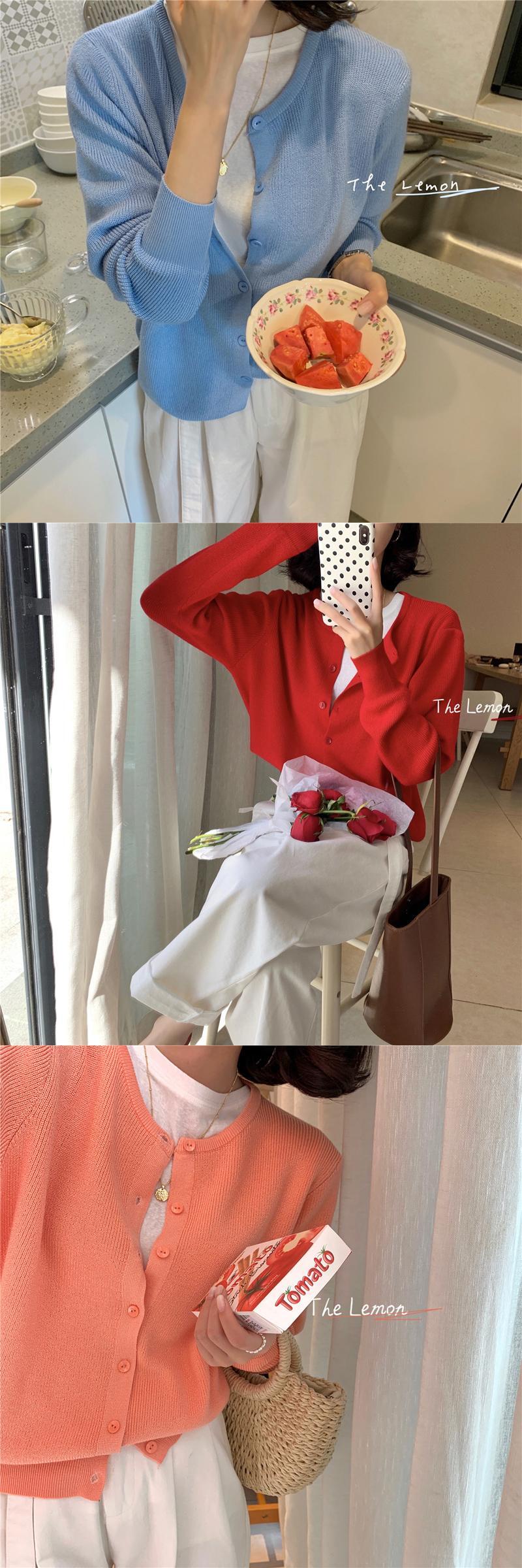 ベーシックソリッド カラーラウンドネックニットカーディガンスプリングトップス レディース 春物 Oネック ソリッドカラー ビッグFスモールZ韓国70777567687