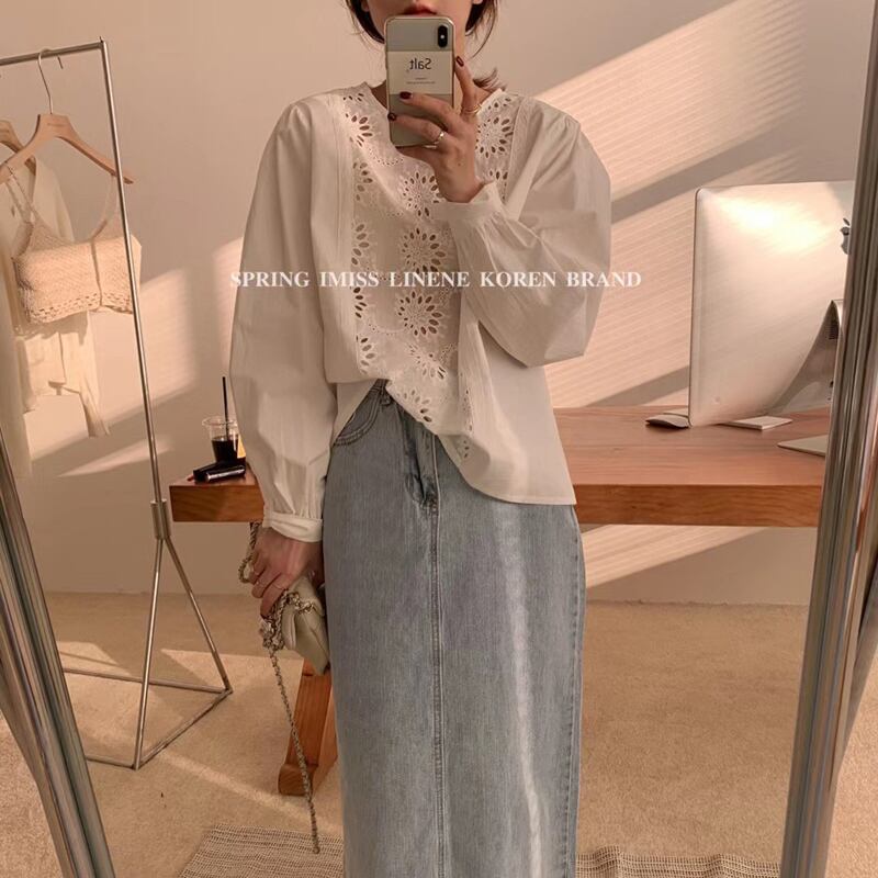 シャツ ラウンドネックプルオーバー ブラウス スプリングレディース 春物 Oネック ビッグFスモールZ韓国10055029492