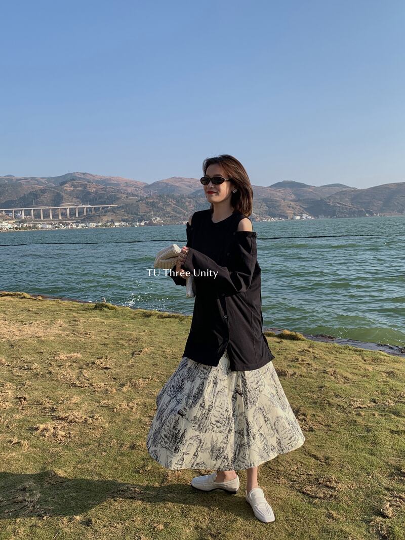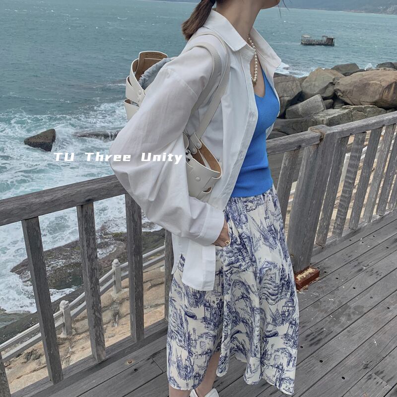 スタンダードAラインスカート パターンハイウェスト薄手レディース レトロ ビッグFスモールZ韓国80415918201
