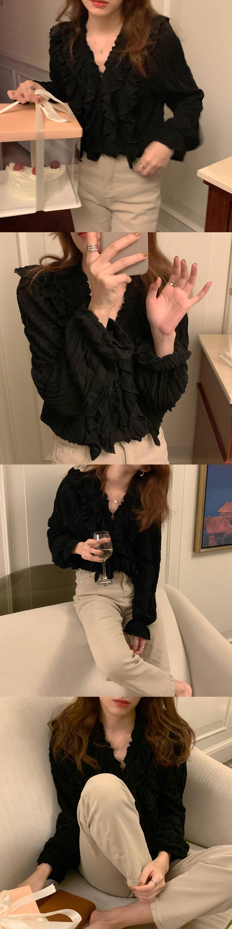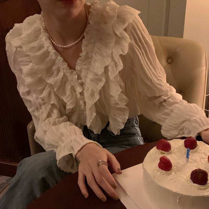 シャツ Vネックスリーブスプリングトップス 春物 ビッグFスモールZ韓国39816423572