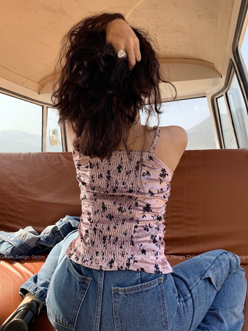 フローラルレディース プリーツ 花柄 スクウェア ビッグFスモールZ韓国75588772862