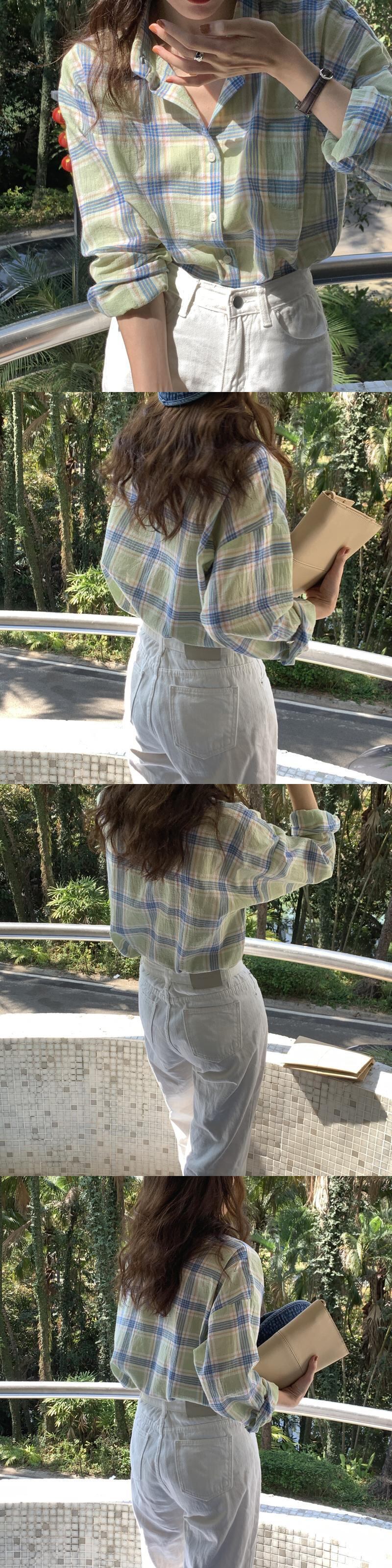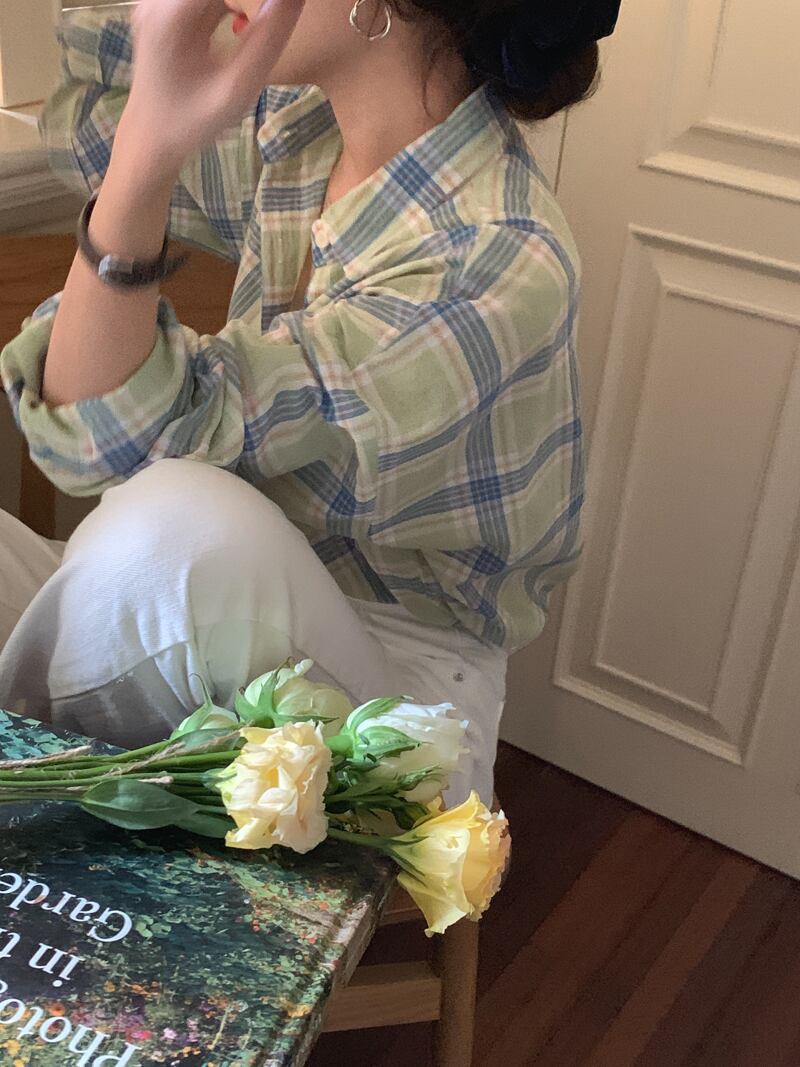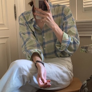 スプリングスタンダードグリーンシャツ ベーシック長袖スリーブトップス レディース ロング レトロ 春物 ビッグFスモールZ韓国81124651474
