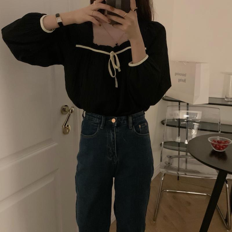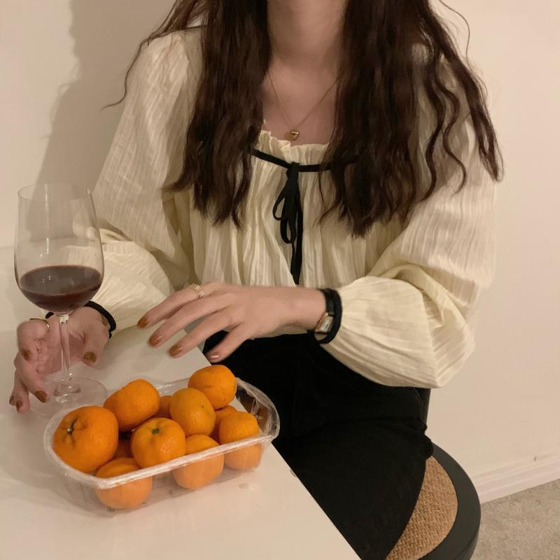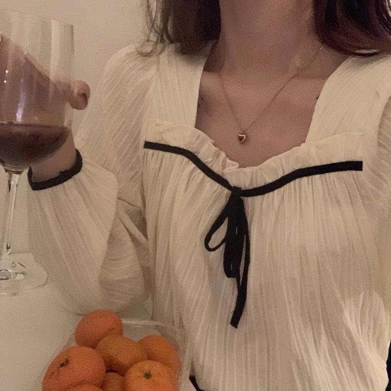 リボントップス カラー長袖スリーブシャツ スプリングレディース ロング 大人ガーリー スウィート キュート カジュアル 春物 スクウェア ビッグFスモールZ韓国67709457732