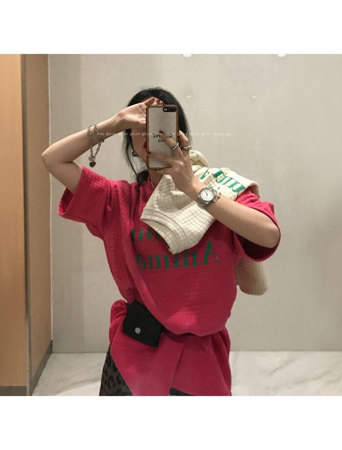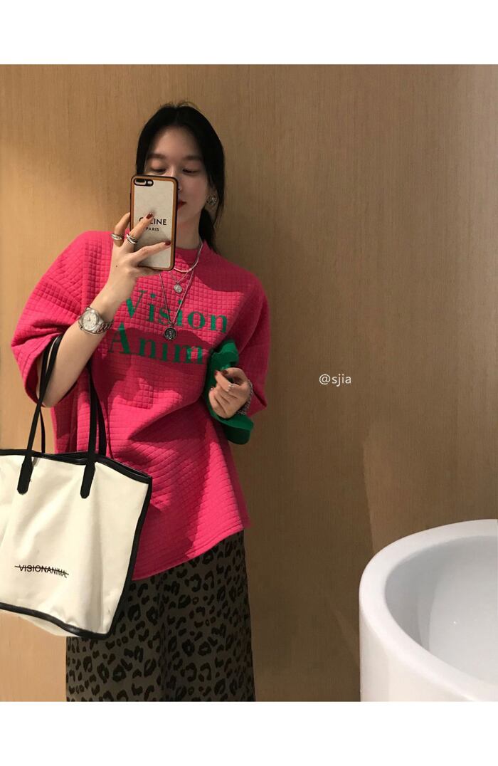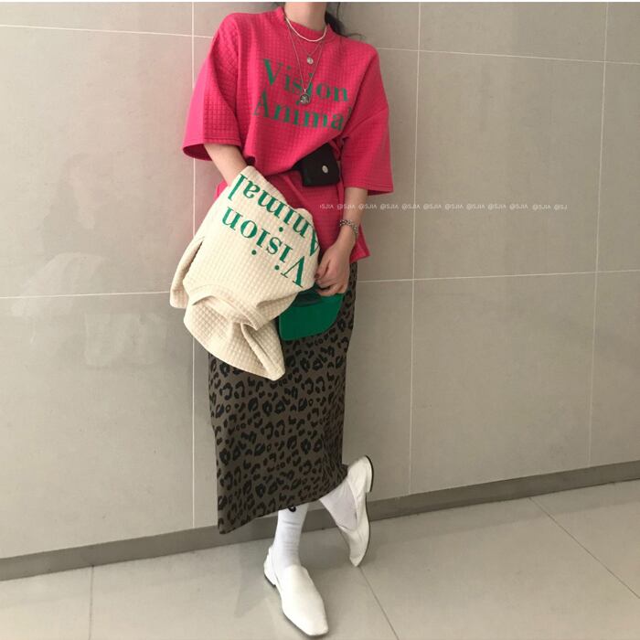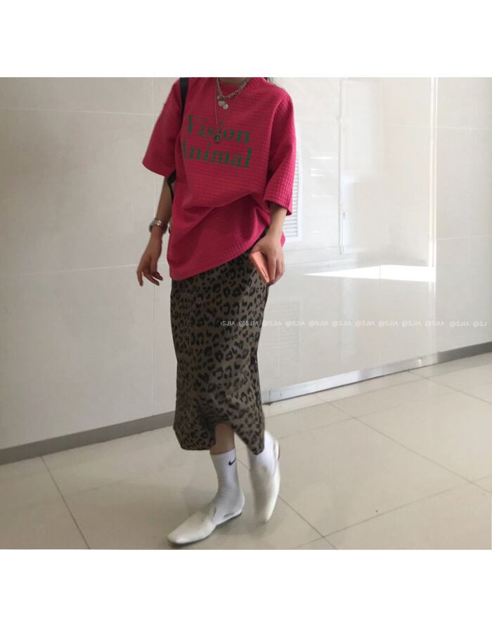 プリントラウンドネックTシャツ トップス レオパードスカート Oネック ビッグFスモールZ韓国85607719548