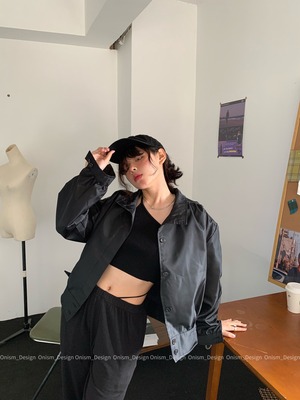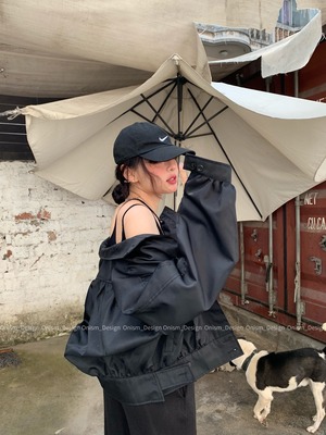 スタンダードジャケット プリーツルーズジッパーショートスプリングレディース レトロ 春物 ビッグFスモールZ韓国66555642003