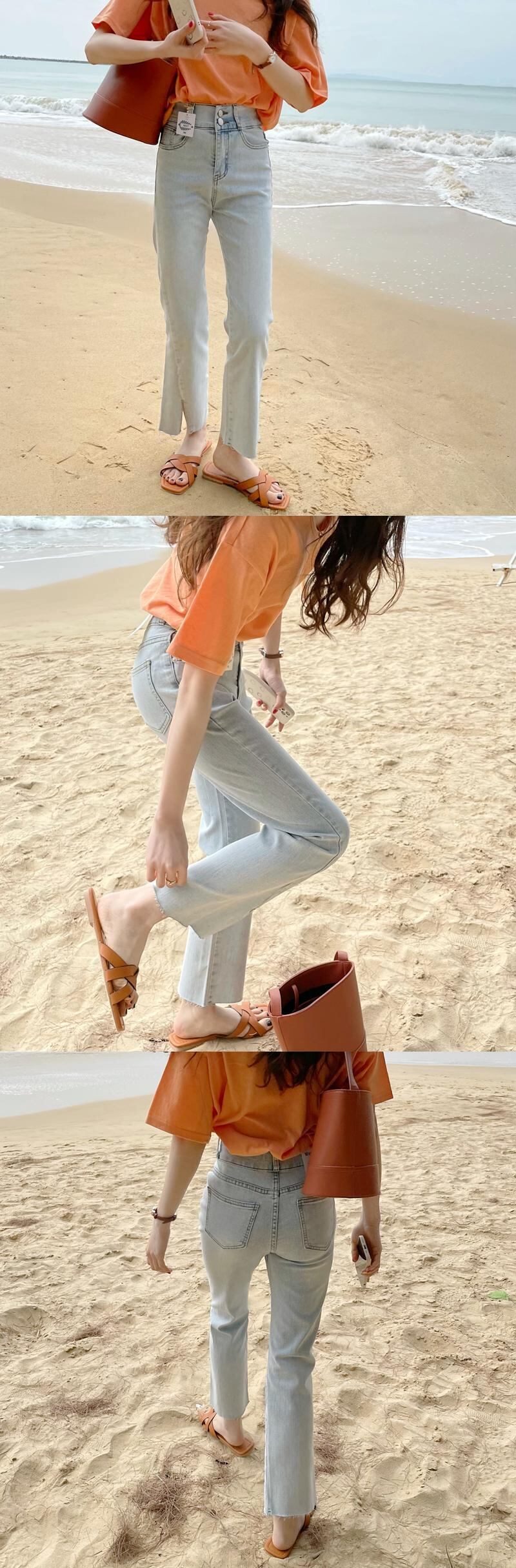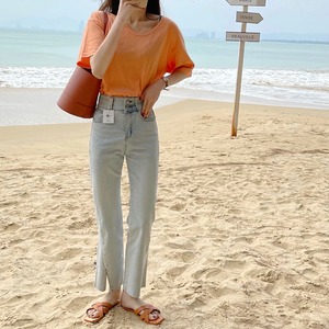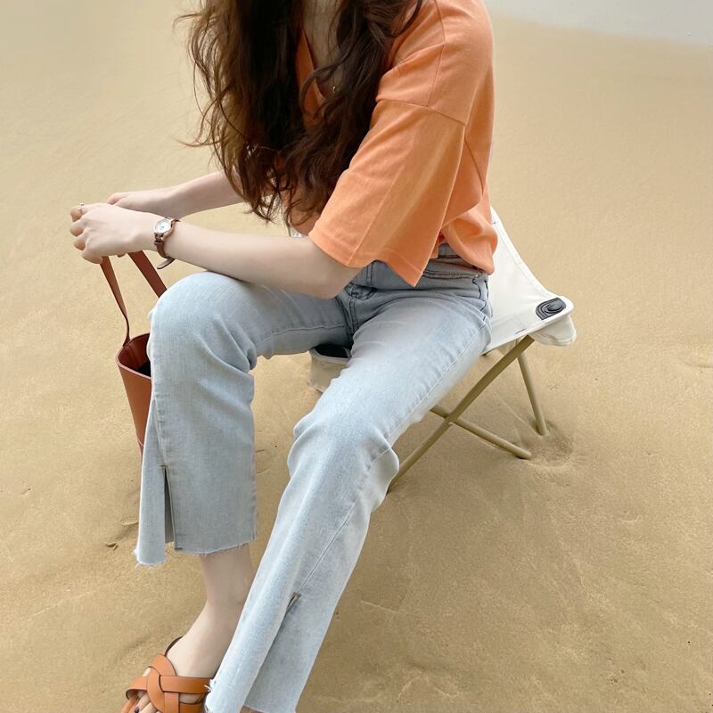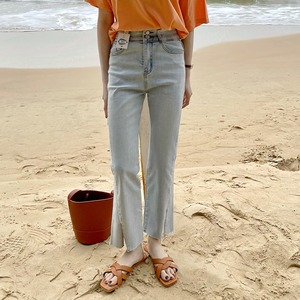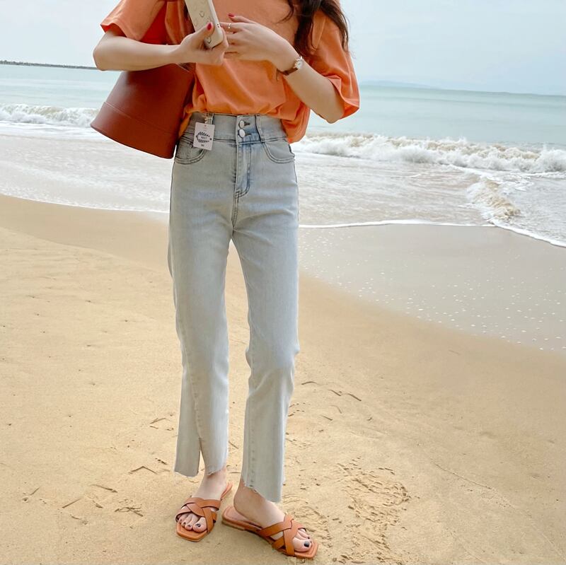 スタンダードボタンスリットパンツ ウェスト薄手 レッド レトロ ビッグFスモールZ韓国12732669764