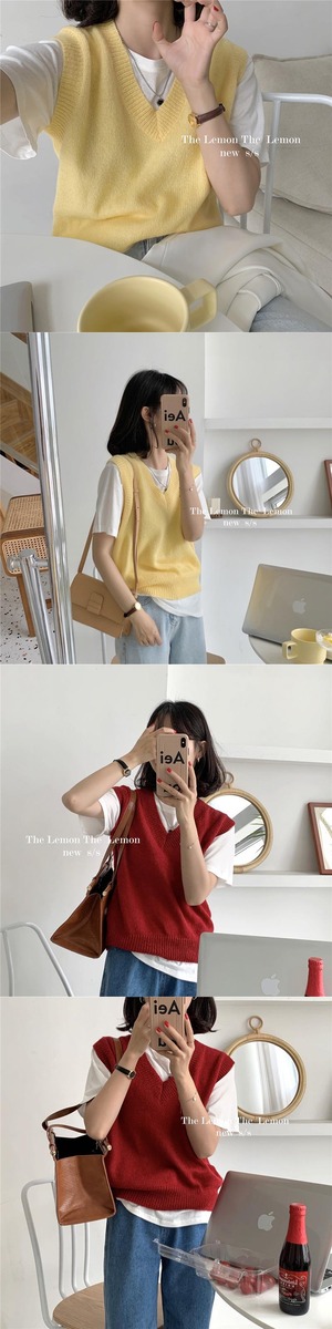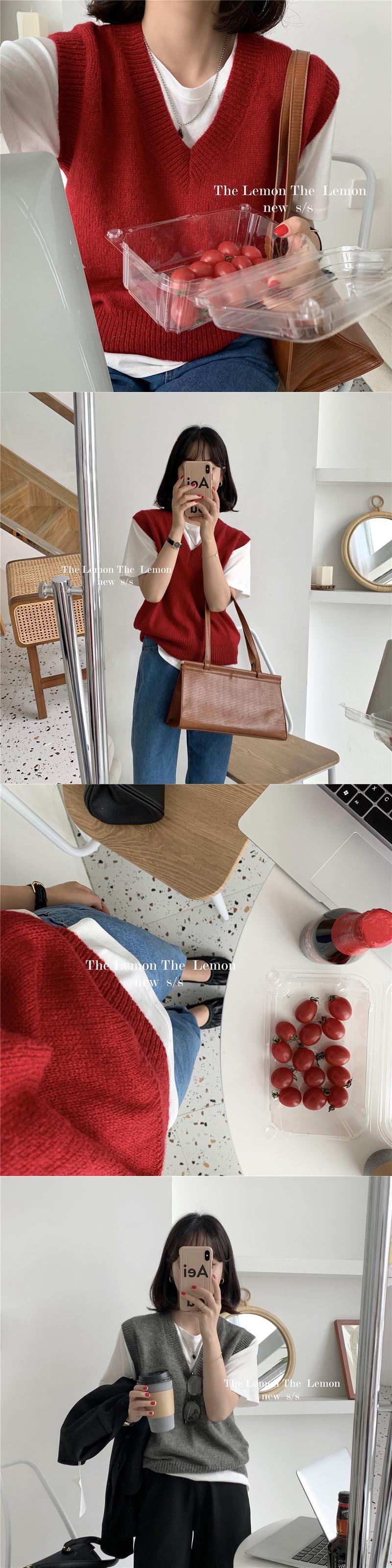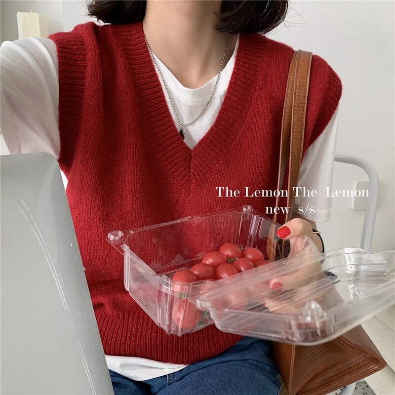 スプリングカラーVネックソリッド プルオーバー ニットトップス レディース レッド 春物 ソリッドカラー ビッグFスモールZ韓国11289015844