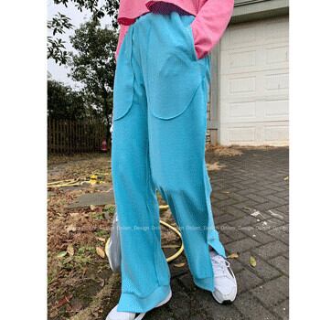 スリットパンツ ルーズストレッチウェストワイドレッグレディース レース エラスティック 伸縮 ワイドパンツ レースアップ ビッグFスモールZ韓国67283266690
