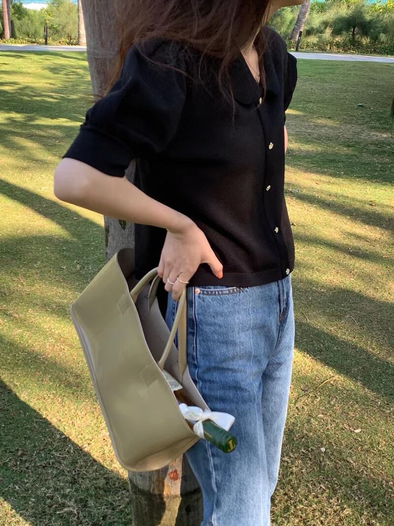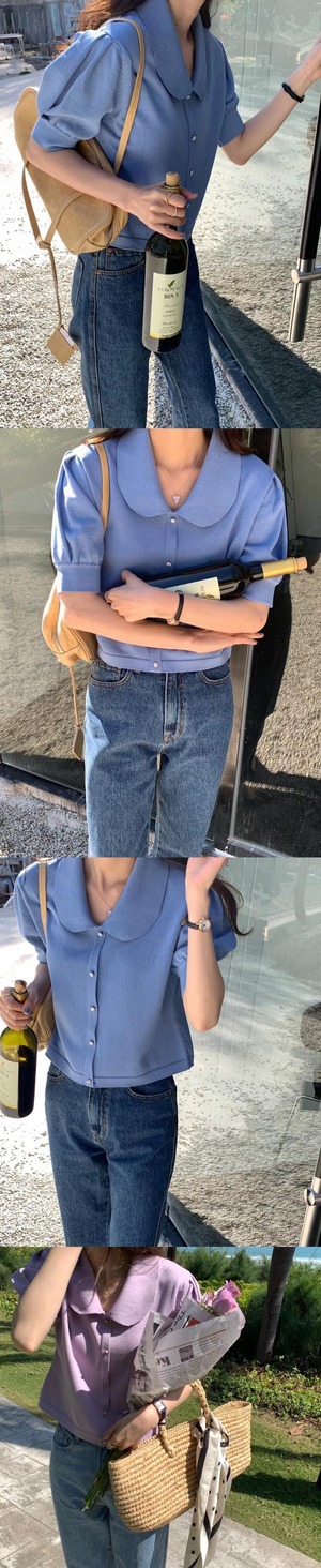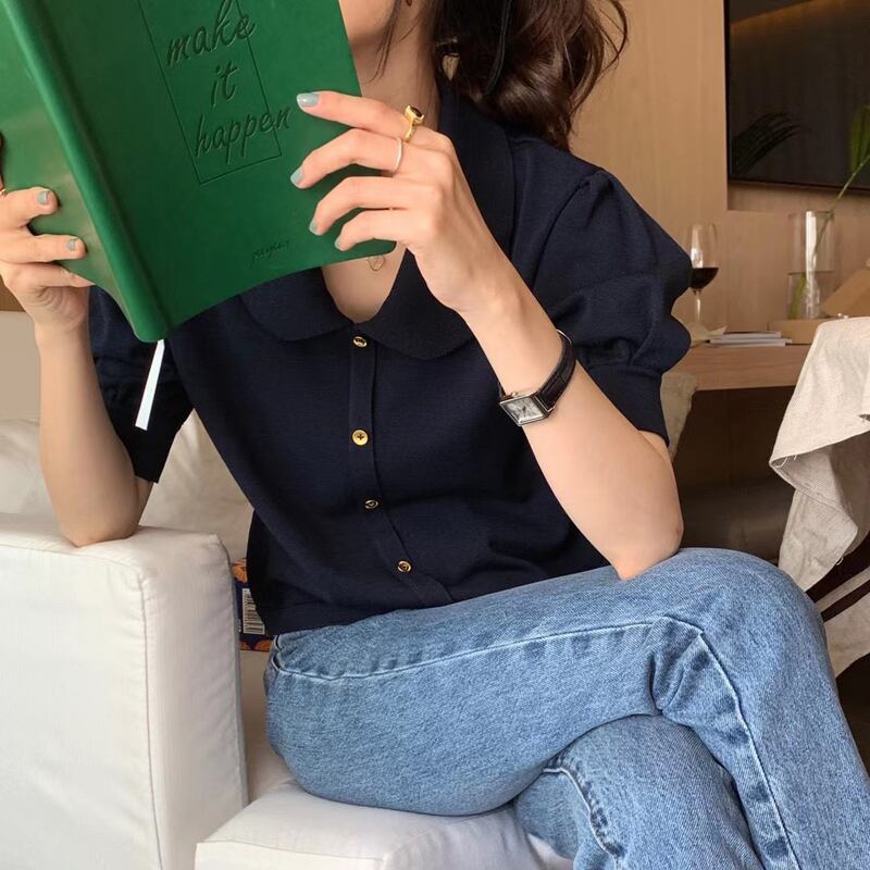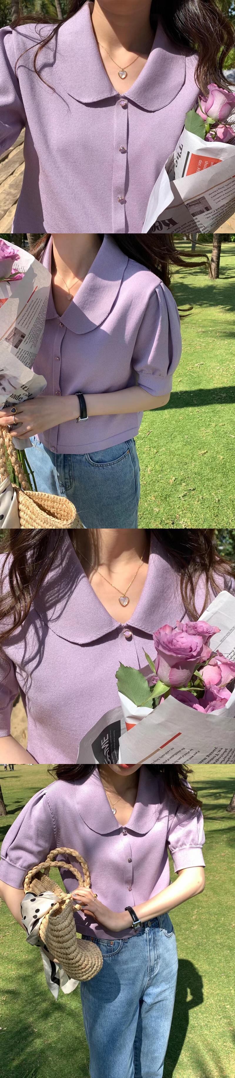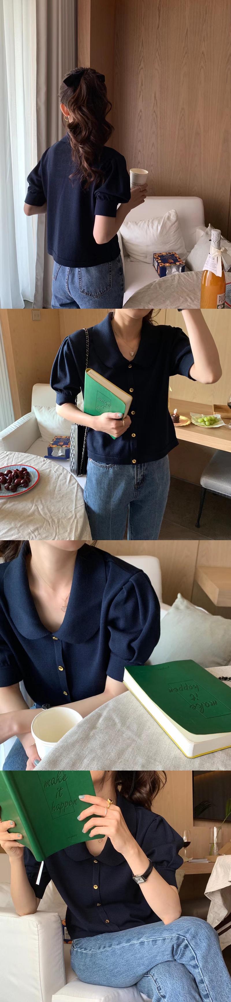 ボタンニットセーター プリーツ半袖スリーブトップス スプリングレディース ショート ハーフスリーブ 春物 ビッグFスモールZ韓国55591765878