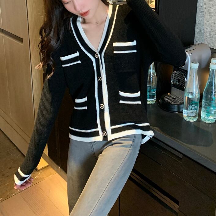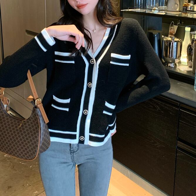 スタイルカラーカーディガンルーズVネックニットコート ジャケット レディース ビッグFスモールZ韓国65019481674