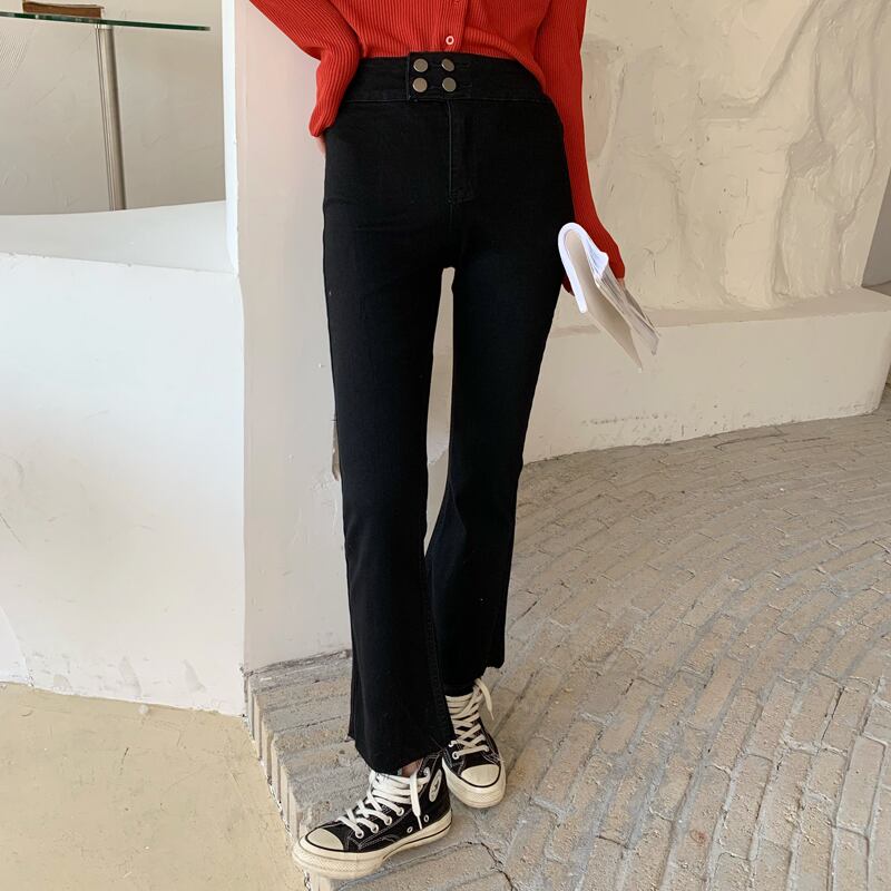 ボタンハイウェストジーンズ スリムパンツ スプリング レッド 春物 ビッグFスモールZ韓国89678473395