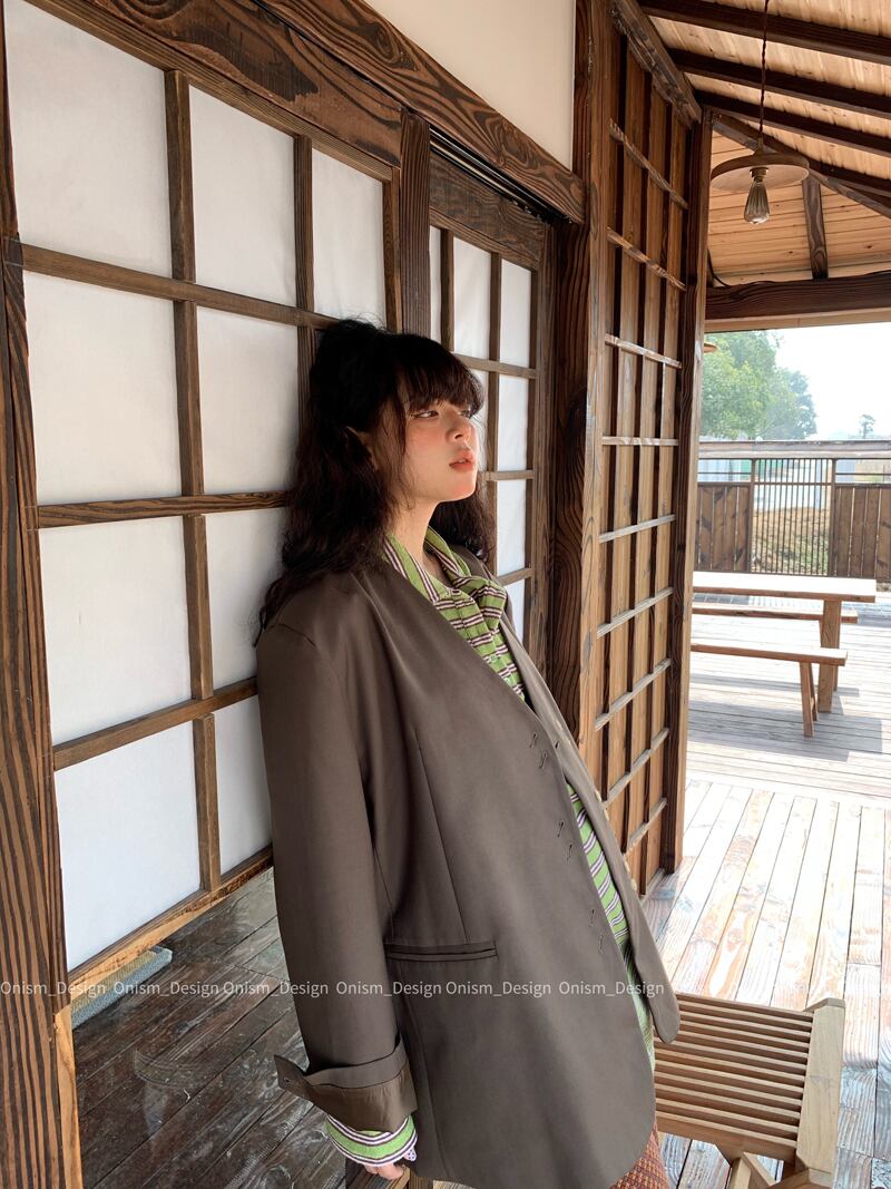 ルーズVネックジャケット スプリングトップス レディース 春物 ビッグFスモールZ韓国53982398939