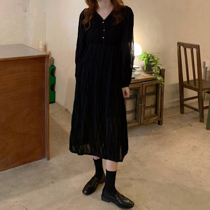 Vネックロングドレス スプリングレディース 春物 ビッグFスモールZ韓国95263930085