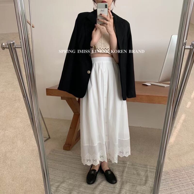レーススカート ソリッド カラーハイウェスト薄手Aライン ソリッドカラー ビッグFスモールZ韓国47245755455
