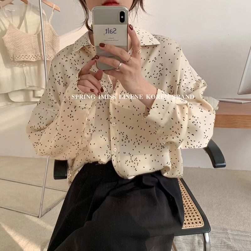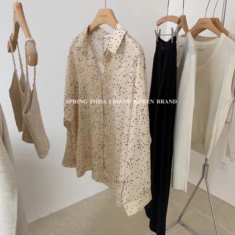 スタンダードシャツ ルーズスプリング長袖スリーブレディース ロング レトロ 春物 ビッグFスモールZ韓国84221337791