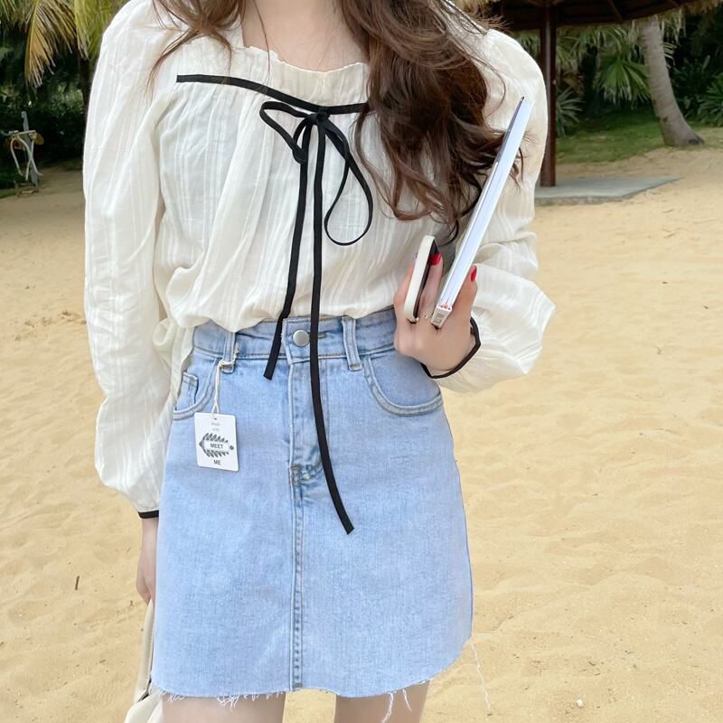 薄手Aラインカラーショート ハイウェスト スカート ビッグFスモールZ韓国17926291105