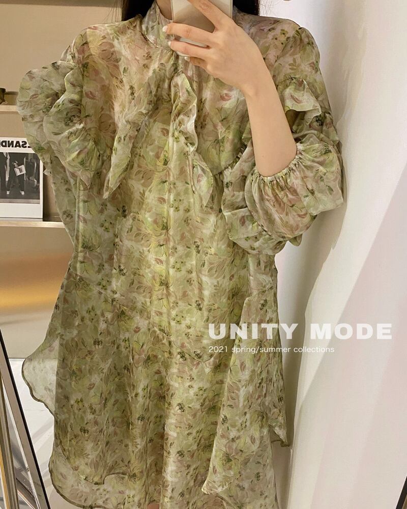 ドレス スプリングプリントフローラルスカート ルーズロングレディース 春物 花柄 ビッグFスモールZ韓国43250566362