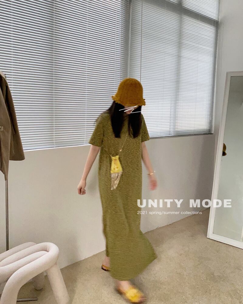 半袖スリーブドレス ルーズスリットTシャツ スカート ロングレディース ショート ハーフスリーブ ビッグFスモールZ韓国65220082435