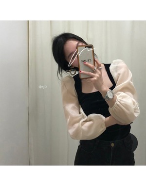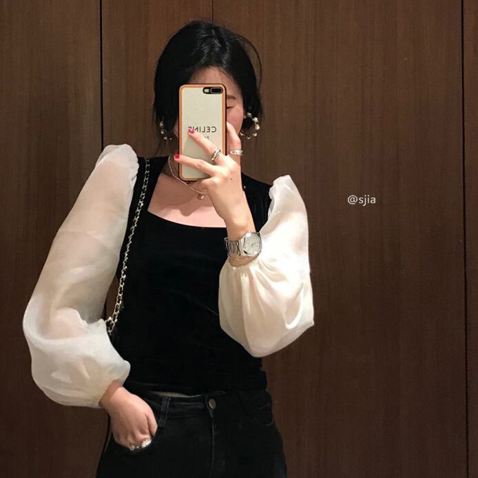スタンダードカラー薄手ベルベットブラウス シャツ スプリングレディース ロング レトロ 春物 スクウェア ステッチ ビッグFスモールZ韓国63917468115