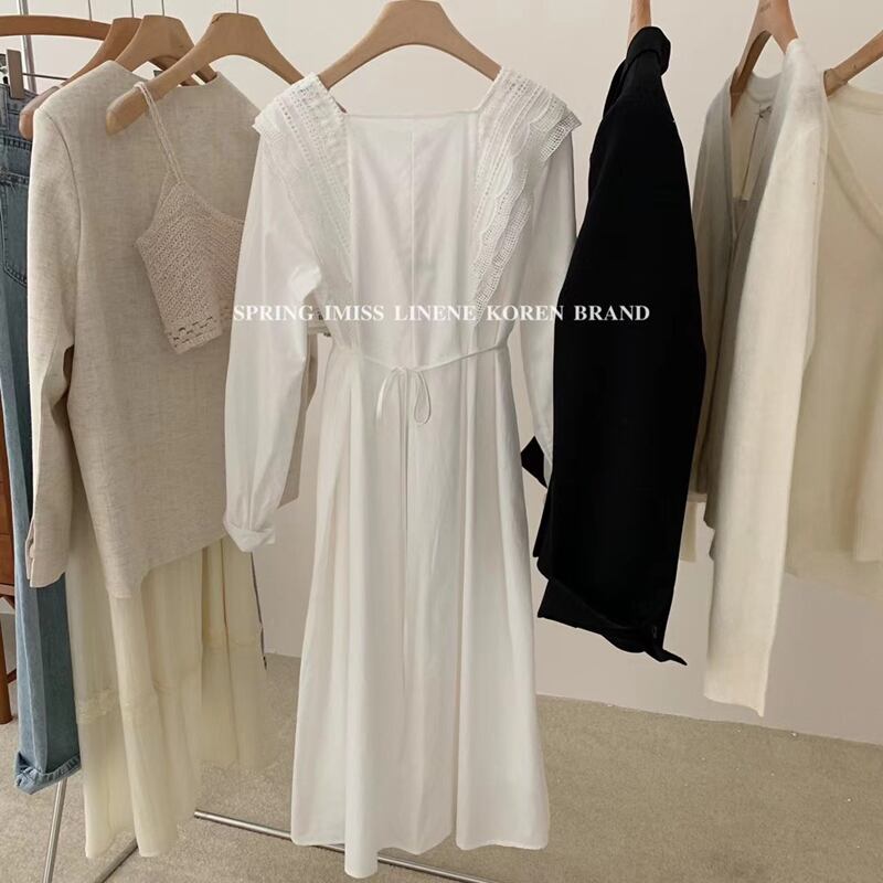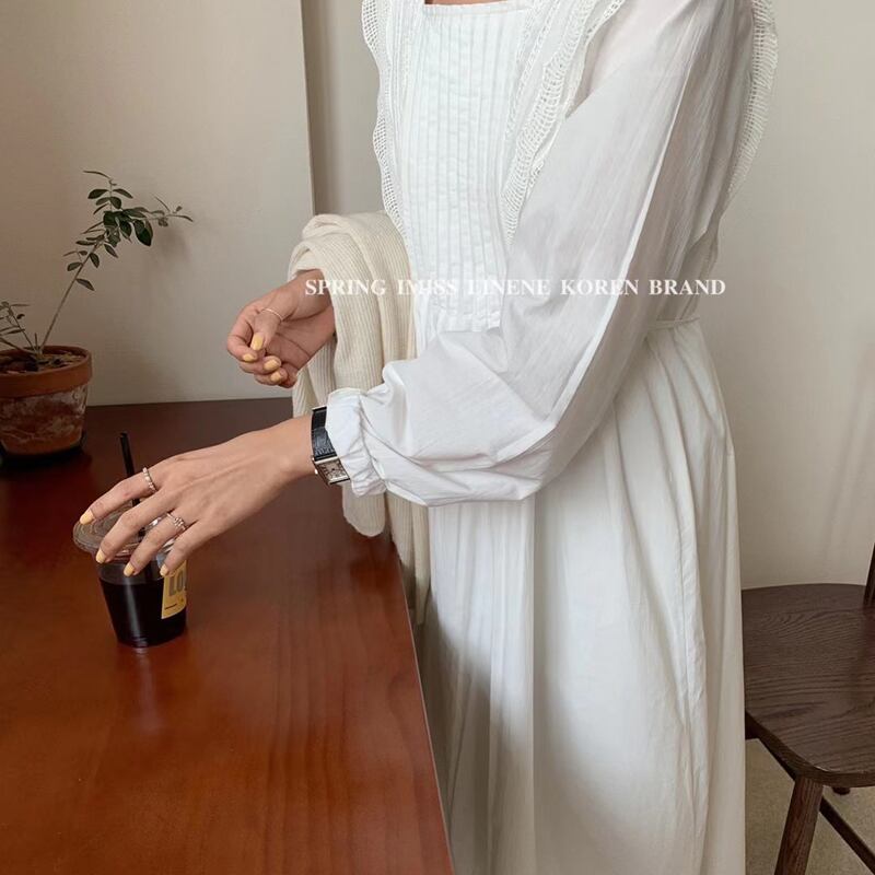 レーススカート プリーツロングドレス スプリング 春物 スクウェア ビッグFスモールZ韓国29117315890