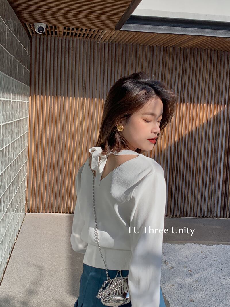 バックレースVネックセーター ブレストスプリングトップス レディース 春物 ビッグFスモールZ韓国51157080694