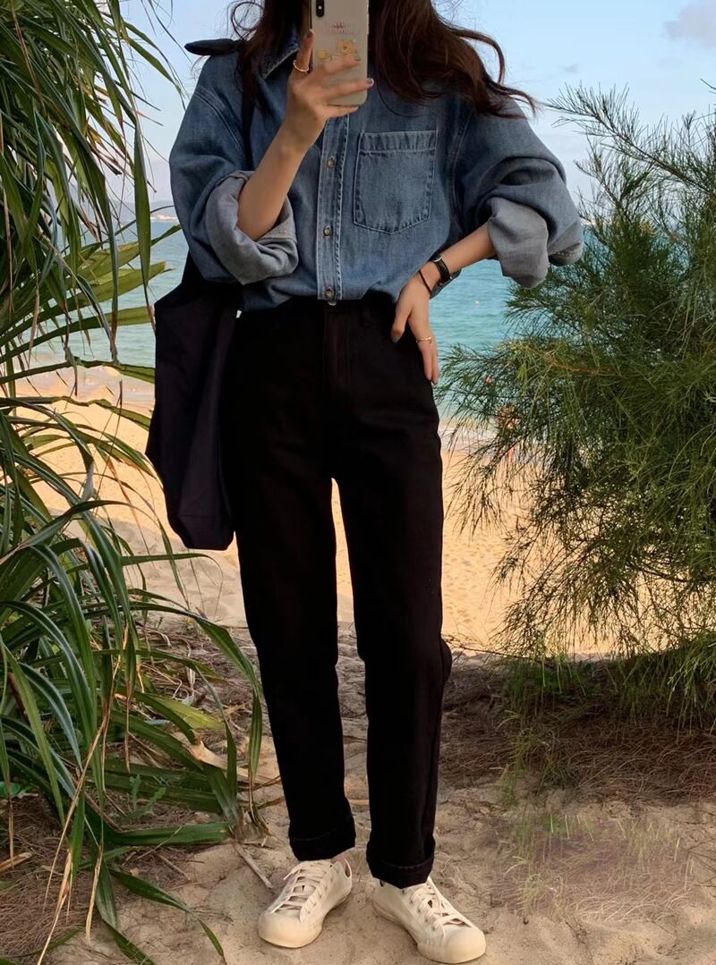 ジーンズ パンツ ハイウェストウェストスプリングサマーレディース 春物 夏物 ビッグFスモールZ韓国14381616918