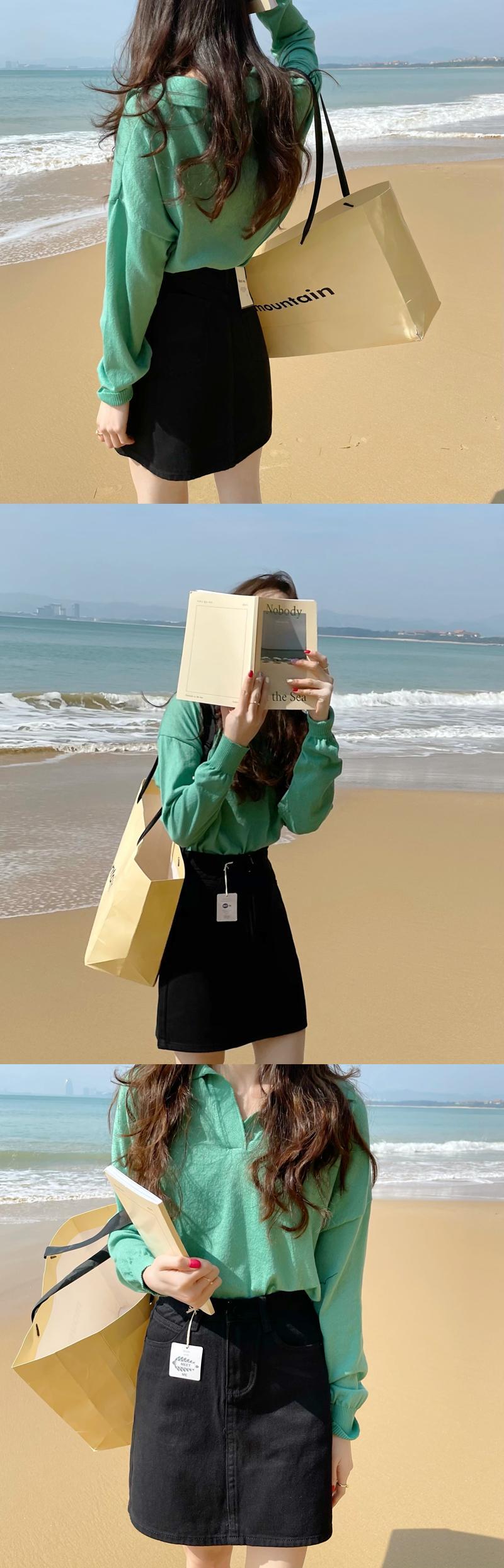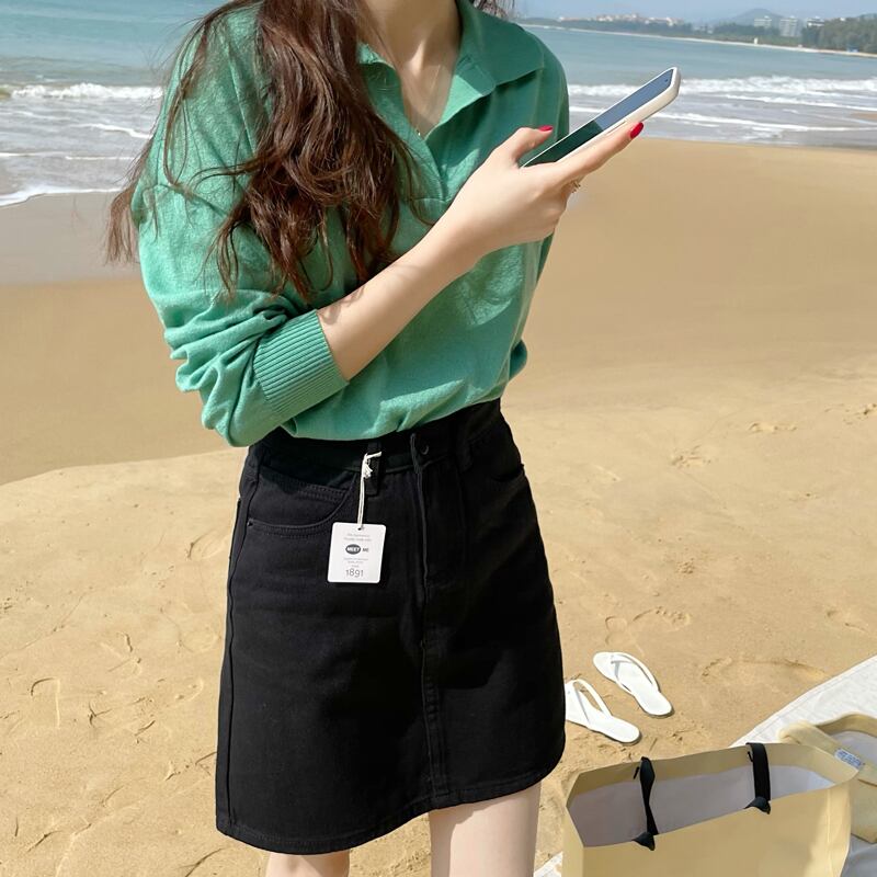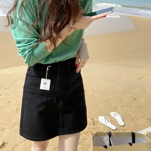 薄手スカート ハイウェストウェストAラインブラックショート ビッグFスモールZ韓国77956365323