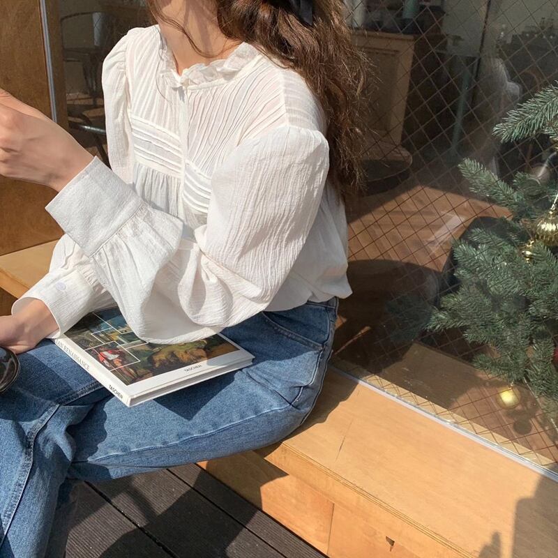 ストライプトップス レース長袖スリーブシャツ スプリング ロング 春物 ビッグFスモールZ韓国86685042754