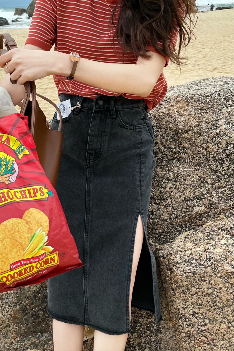 スタンダードハイウェストスカート スリットAラインスプリング レトロ 春物 ビッグFスモールZ韓国35127374560