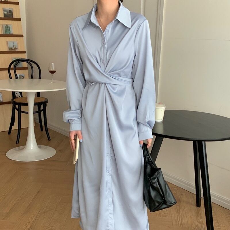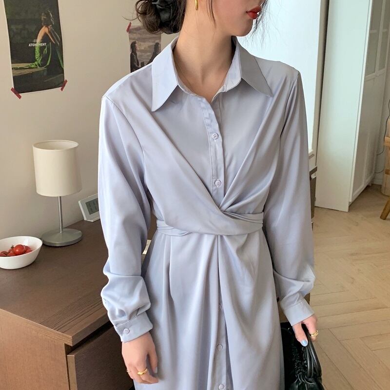 スリットシャツ スカート スリム長袖スリーブドレス スプリング ロング 春物 ビッグFスモールZ韓国98668452118