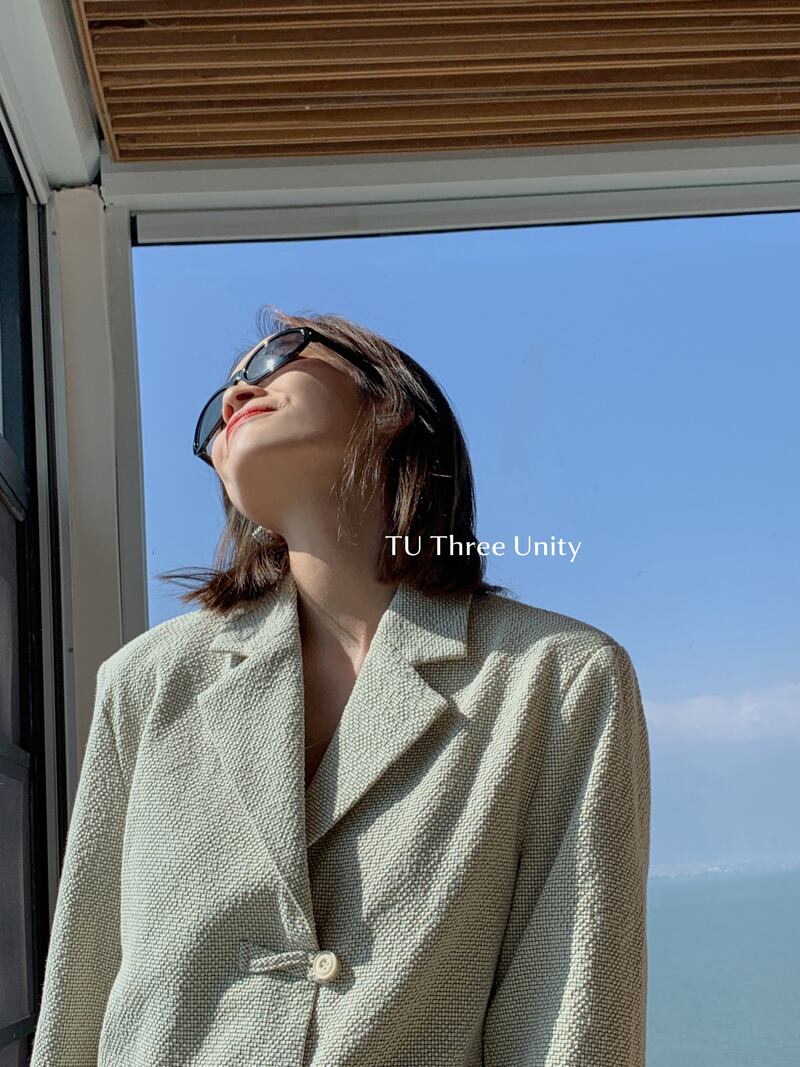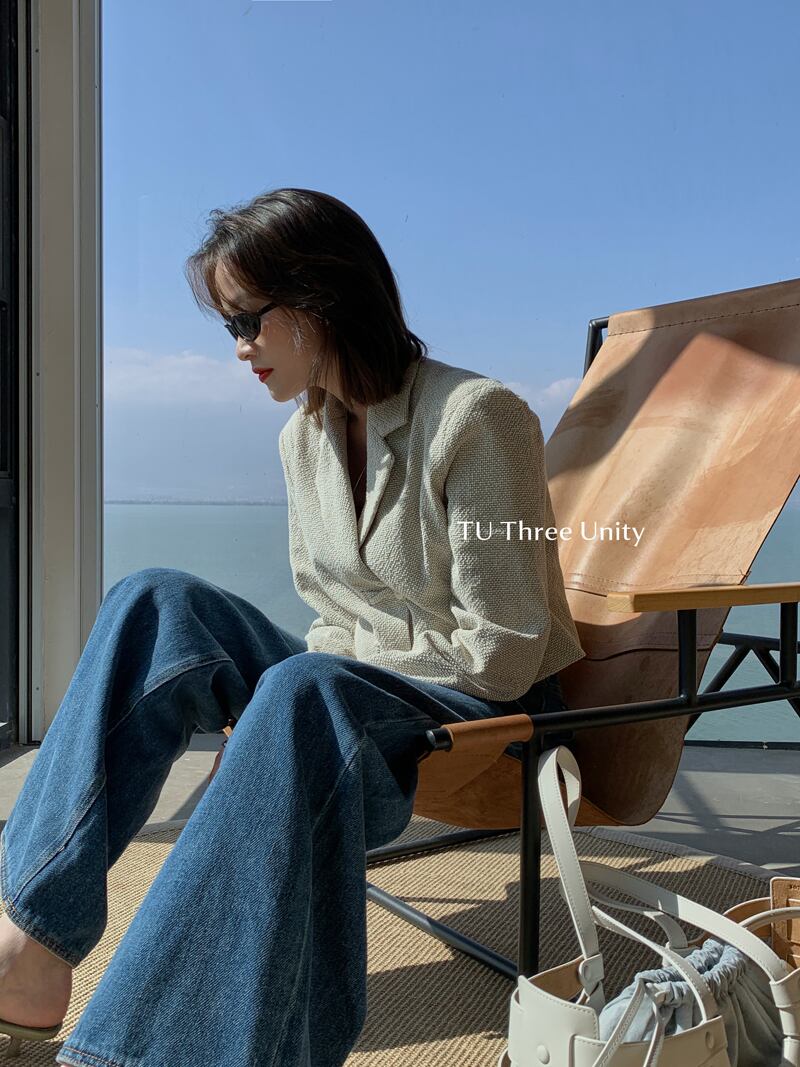 ボタンカラークロップドスプリングレディース 春物 ビッグFスモールZ韓国93073566777