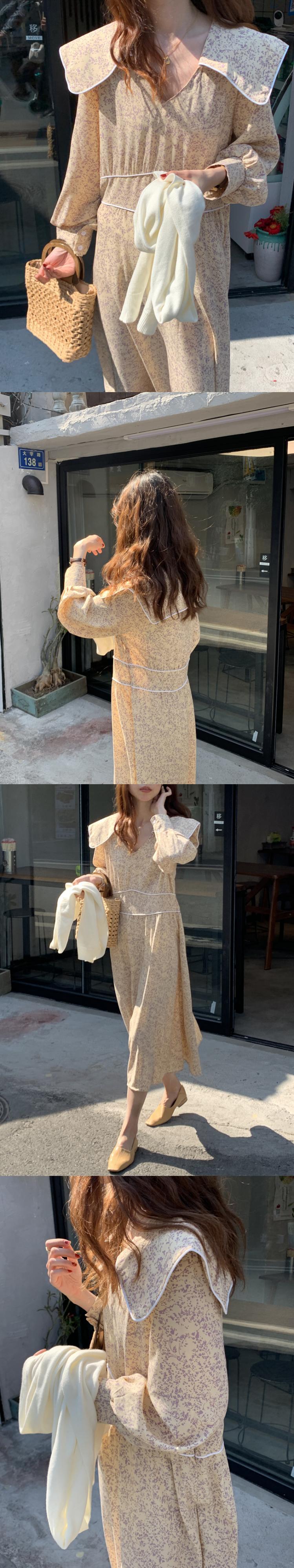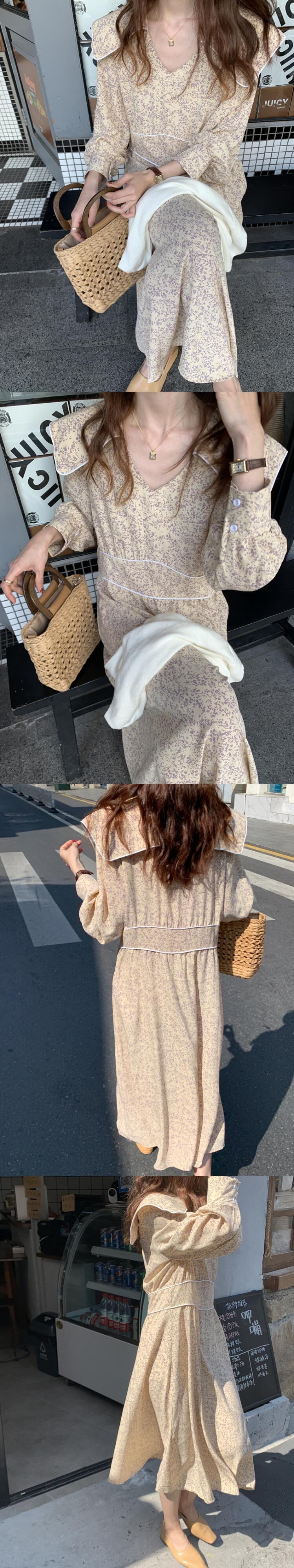 スタンダードスプリングフローラルドレス ルーズ長袖スリーブレディース ロング レトロ 春物 花柄 ビッグFスモールZ韓国72346357152