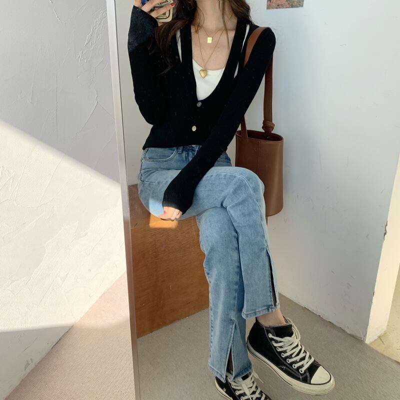 セーター カラースプリングカーディガンジャケット レディース 春物 ステッチ ビッグFスモールZ韓国99251032889