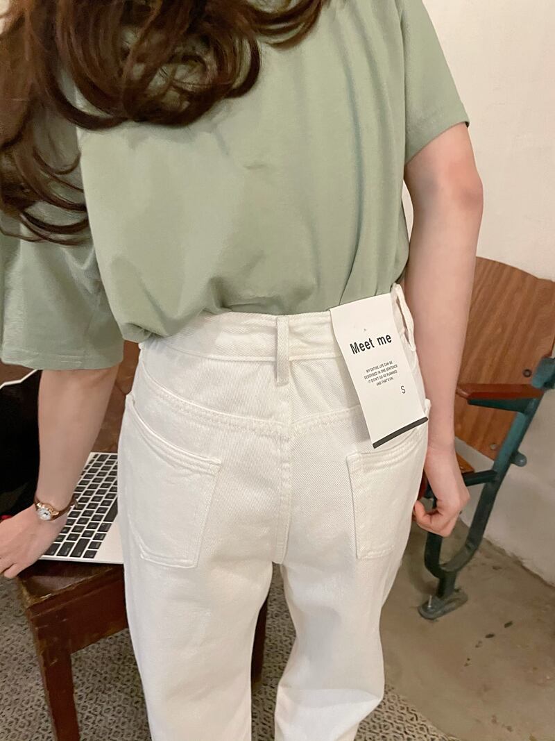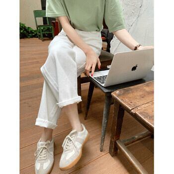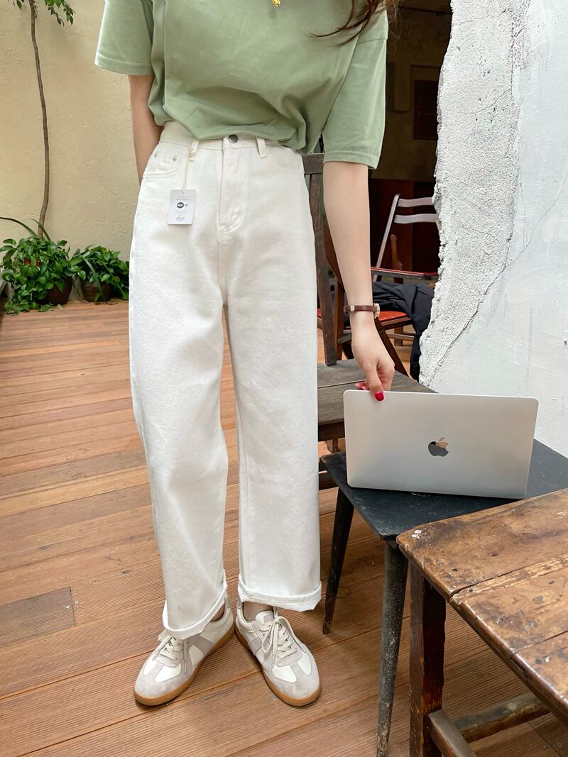 ホワイトジーンズ ハイウェストパンツ ルーズ薄手レディース ビッグFスモールZ韓国46784599930