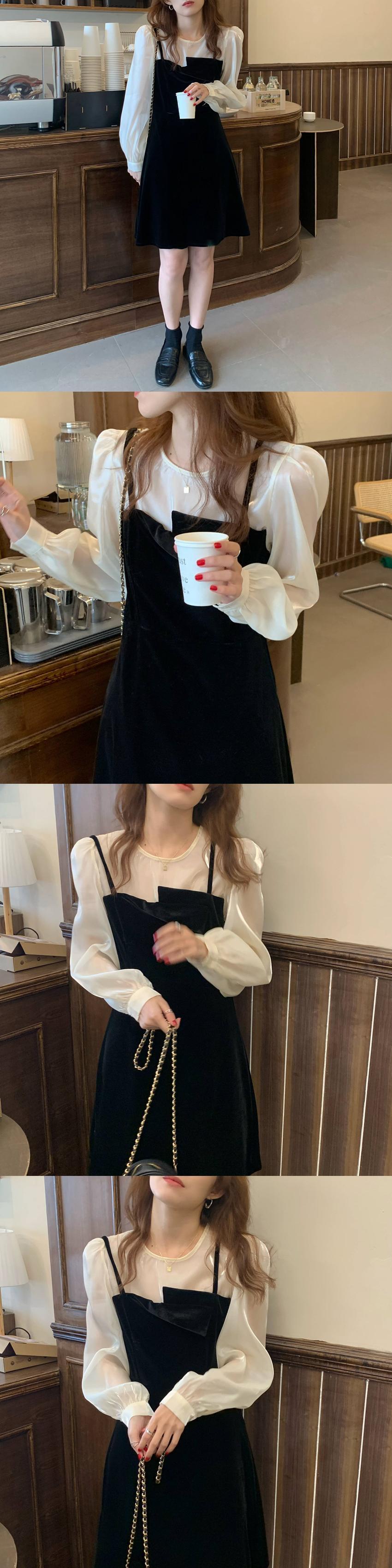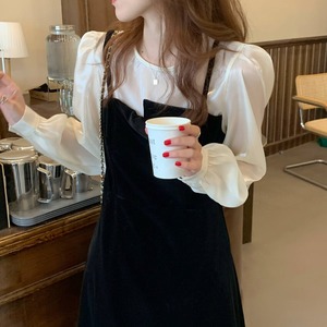 スタンダードベルベットスカート 薄手ドレス レディース ロング レトロ ステッチ ビッグFスモールZ韓国61128523392