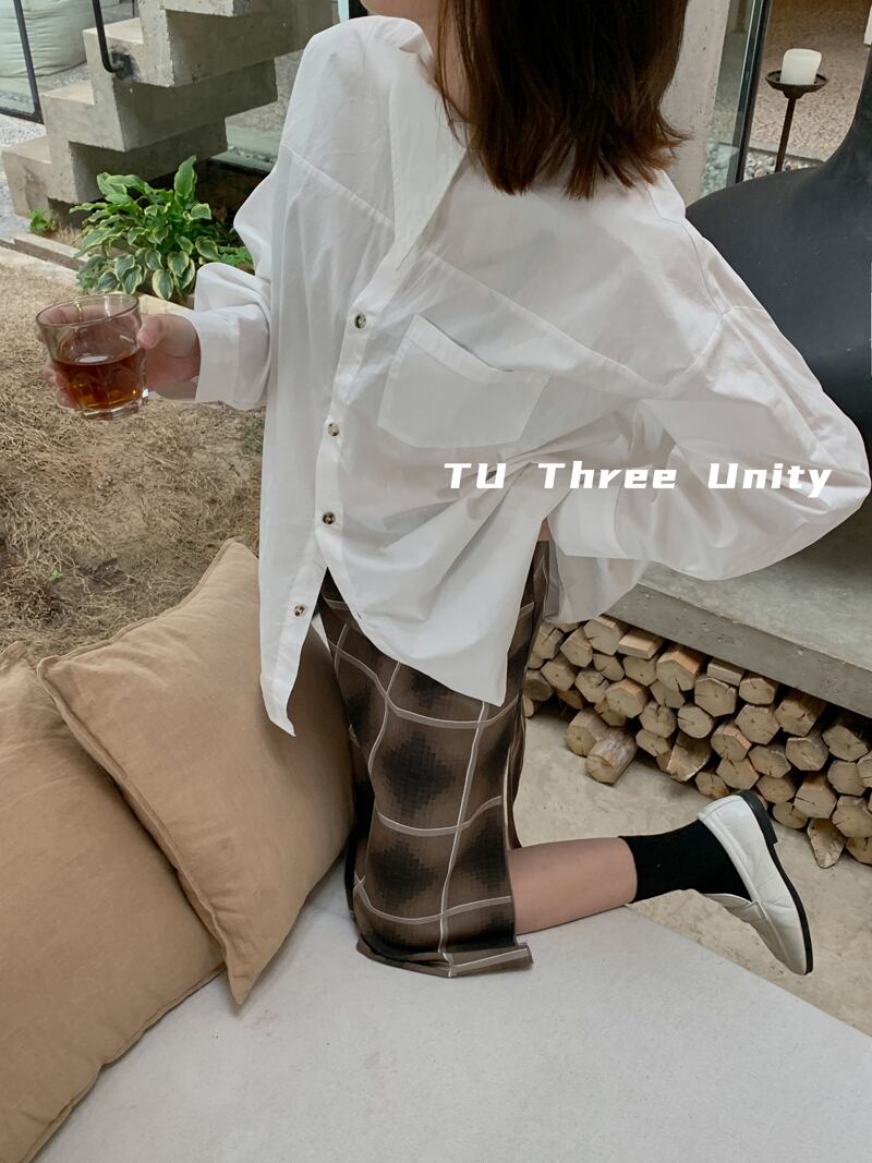 カラールーズソリッド シャツ スプリングトップス レディース ロング 春物 ソリッドカラー ビッグFスモールZ韓国90674045529