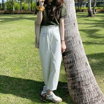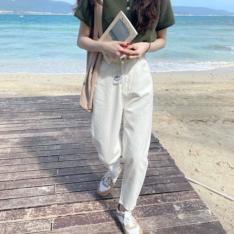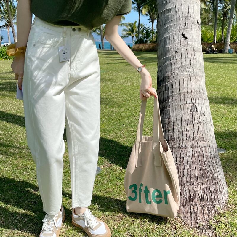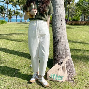 パンツ ルーズハイウェストウェスト薄手ジーンズ スプリングレディース 春物 ビッグFスモールZ韓国35276551894