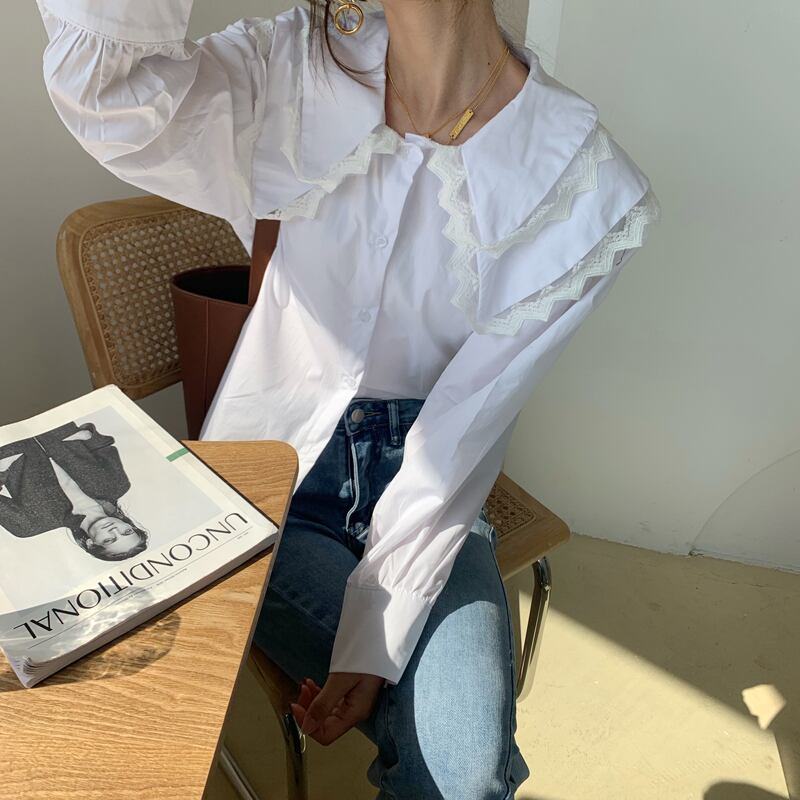 レースダブルカラーシャツ スプリングトップス レディース 春物 ステッチ ビッグFスモールZ韓国62166001543
