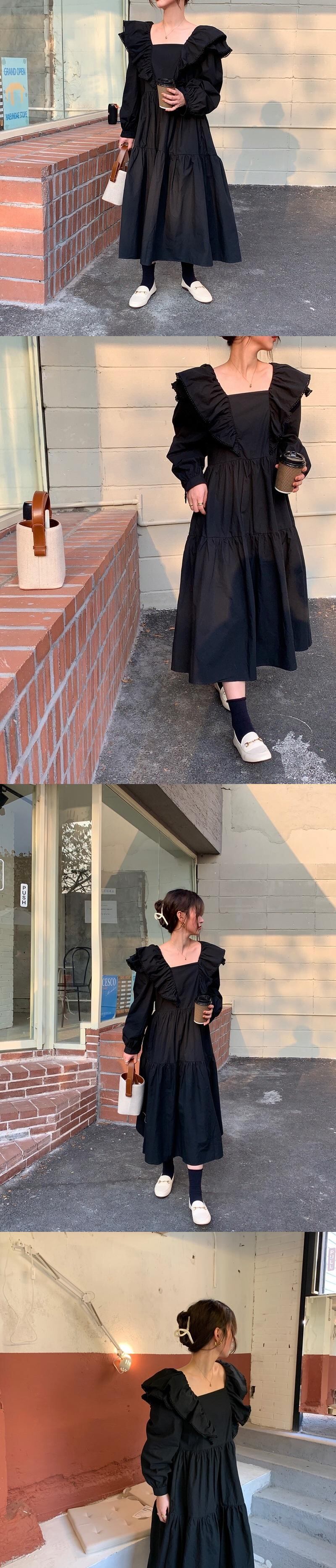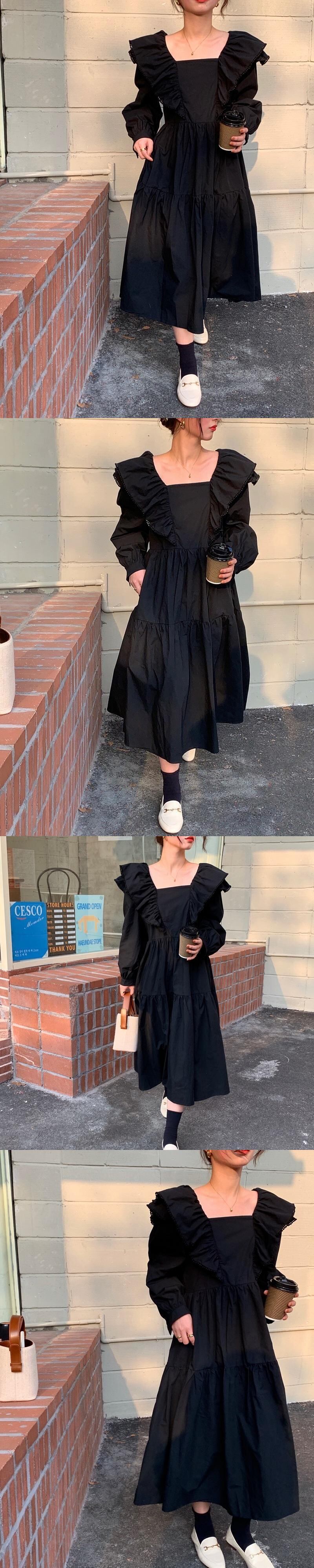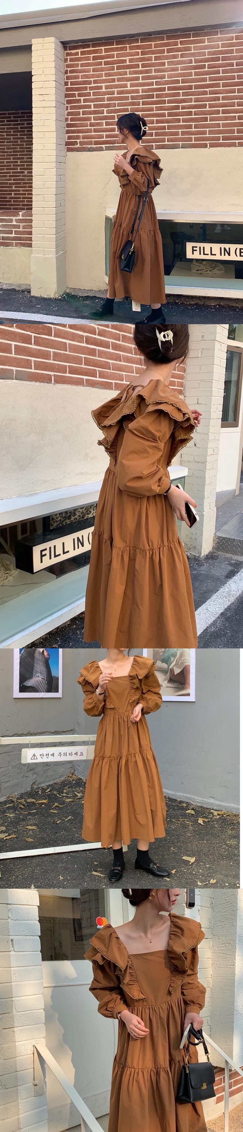 薄手カラールーズドレス バックスプリングロングスカート 春物 スクウェア ビッグFスモールZ韓国72372358997