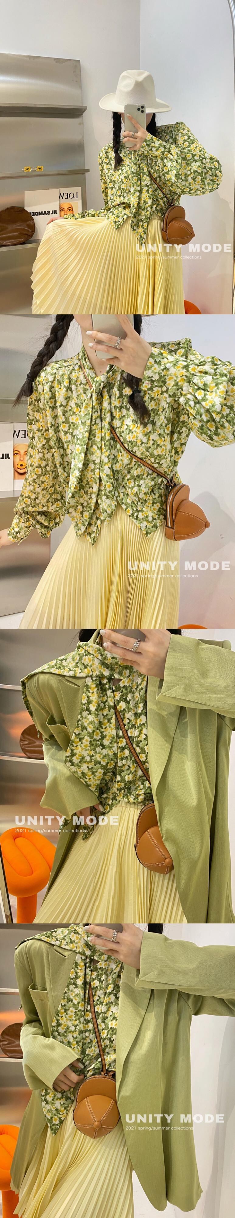 スカーフ カラーフローラルシャツ トップス ロング 花柄 ビッグFスモールZ韓国56446860034