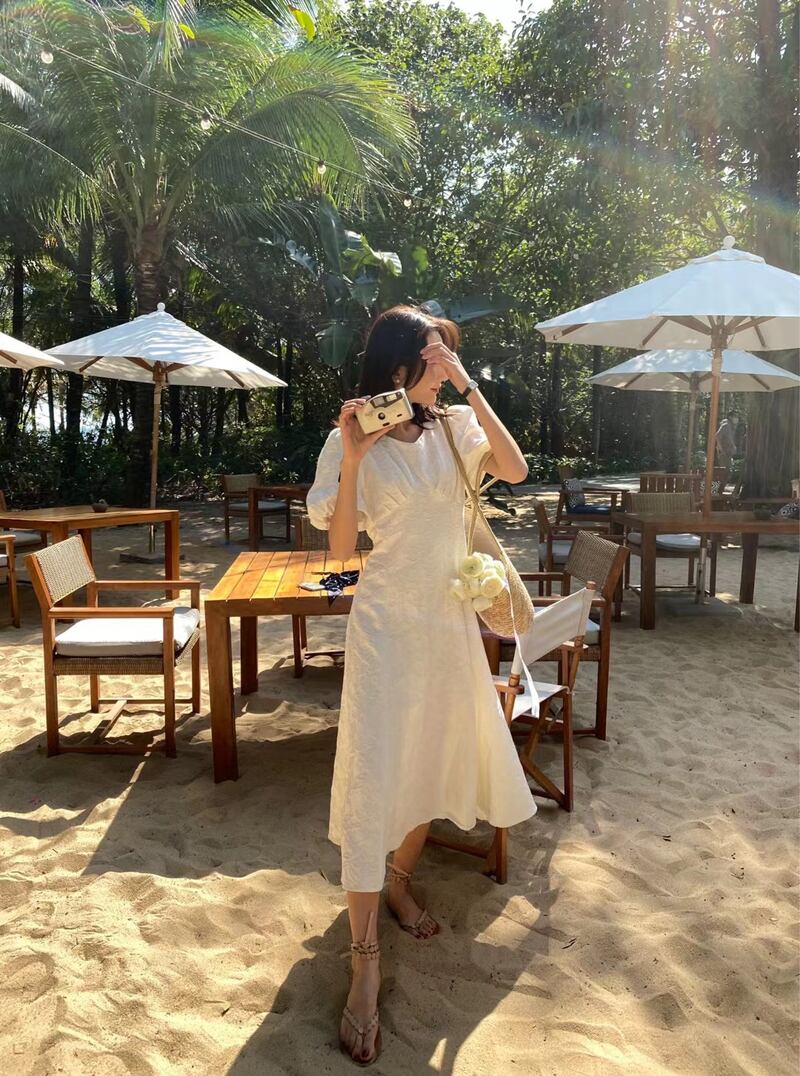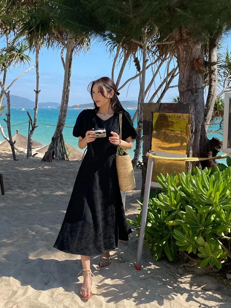 Vネックダークパターンジャカードスカート スタンダードバンドウェストドレス ロング レトロ ビッグFスモールZ韓国78213139717